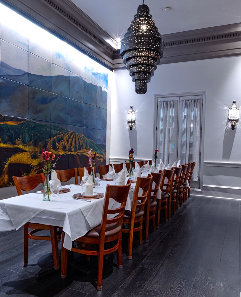 Our dining room layouts can accomodate up to 80 guests in a private indoor setting.